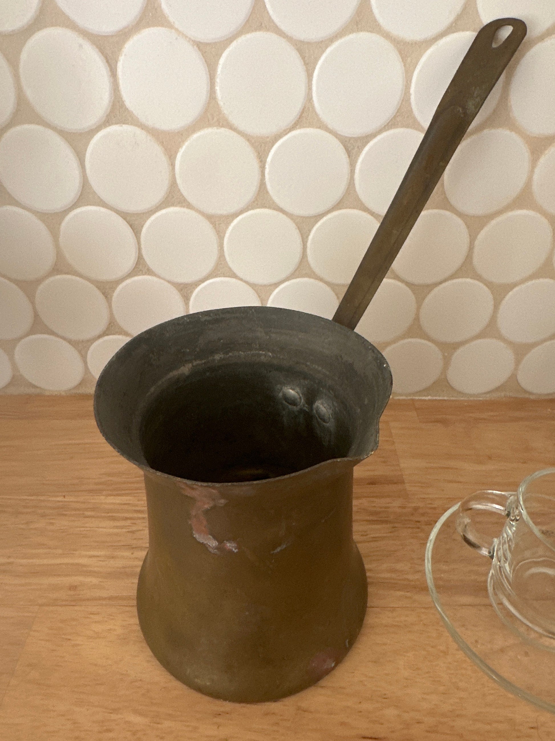 Brew Turkish coffee the vintage way with this tarnished brass cezve.