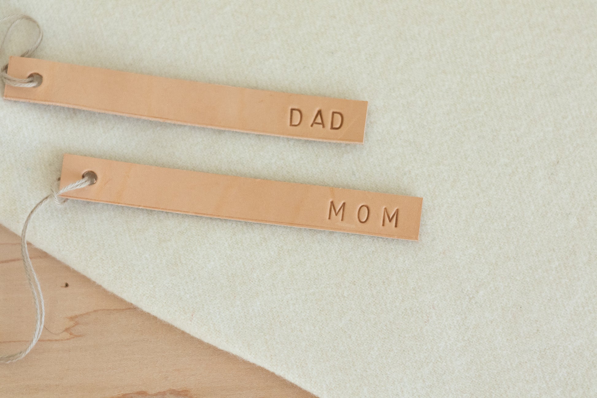 Add a handcrafted touch to your holiday stockings, gifts, and décor with our hand-stamped leather gift tags. Each tag is cut, stamped, hole-punched, and finished entirely by hand using premium vegetable-tanned leather.