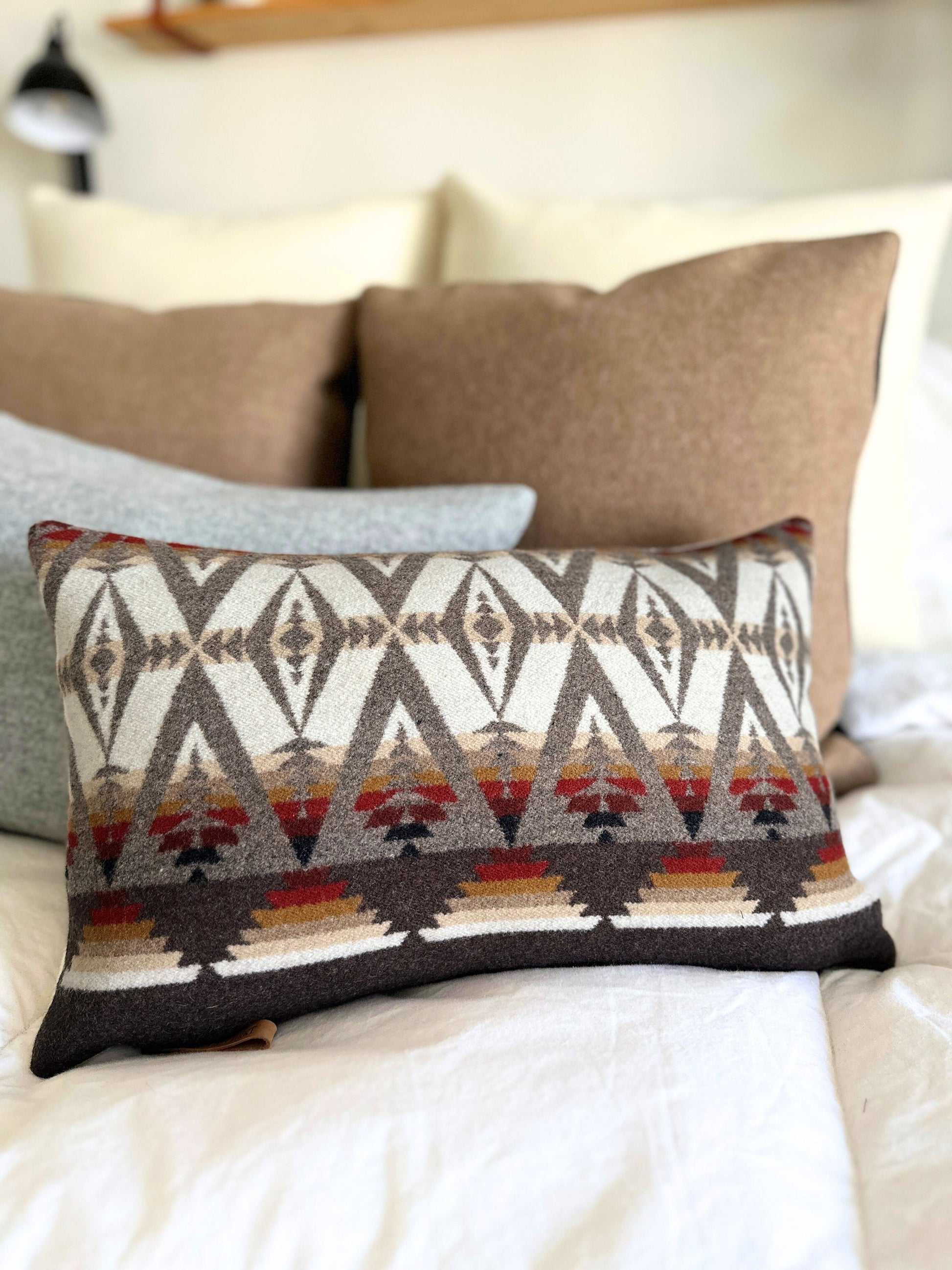 This handcrafted pillow cover is made with Gray Heather Pendleton® Eco-Wise washable wool on both the front and back. The soft, heathered gray tone adds warmth and texture to your space, while the exposed metal YKK zipper with a custom leather pull gives it a polished finish. Each cover is cut, sewn, and finished in my Ridgefield, WA studio with double-stitched seams for durability that lasts.