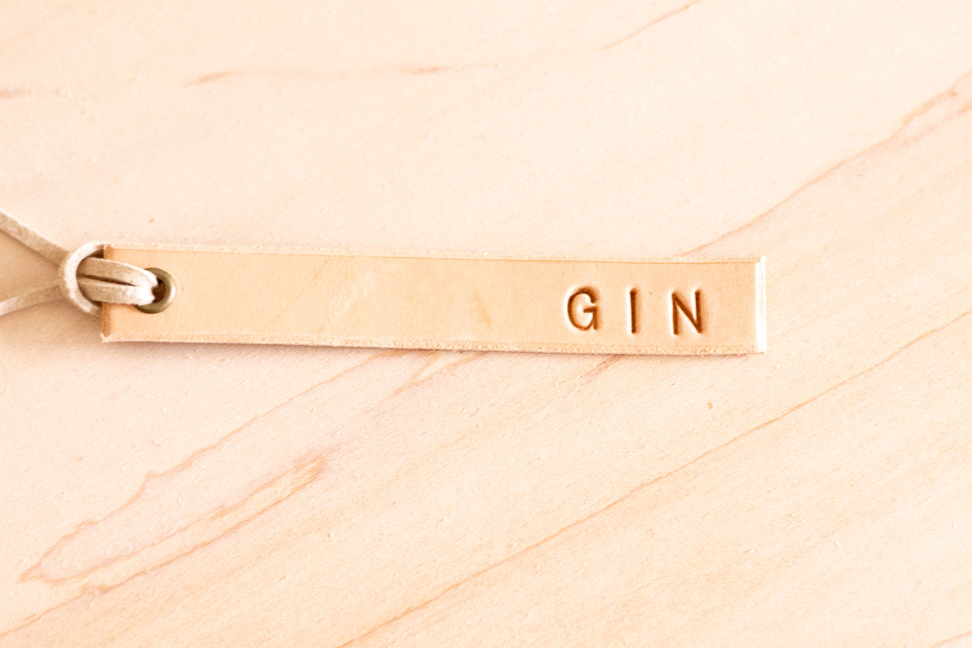 Add a sleek, handcrafted touch to your bar with personalized leather decanter tags. Hand-stamped from premium full-grain vegetable-tanned leather, these clean-style tags feature beveled edges, a straight bottom, and a tan leather lace with grommet for easy attachment.
