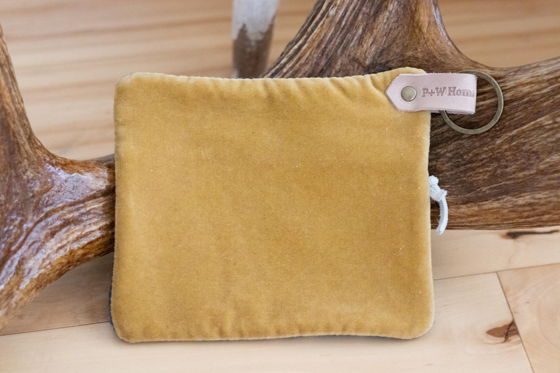 This mini unlined wallet is made with blue floral Pendleton® wool on the front and waxed canvas or vintage gold velvet on the back and has a zipper in the front for easy opening and a split key ring attached with a cowhide leather loop affixed with a metal rivet. We have made every effort to display the colors and images of our products as accurately as possible. We cannot guarantee that your computer monitor's display of any color will be accurate.