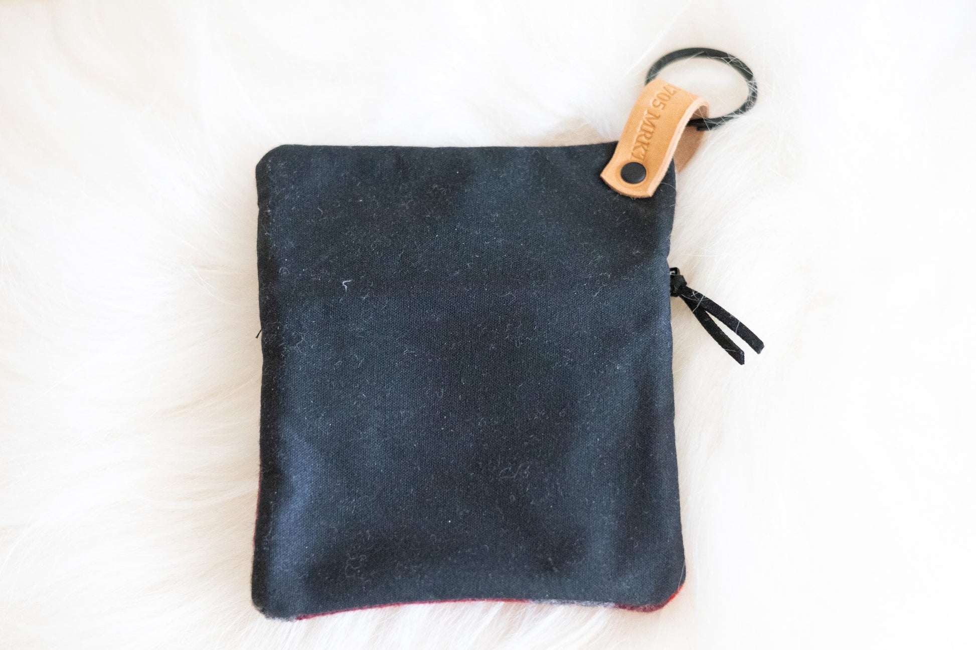 This mini unlined wallet is made with La Paz Scarlet Pendleton® wool on the front and black waxed canvas on the back and has a zipper in the front for easy opening and a split key ring attached with a cowhide leather loop affixed with a metal rivet. We have made every effort to display the colors and images of our products as accurately as possible. We cannot guarantee that your computer monitor's display of any color will be accurate.